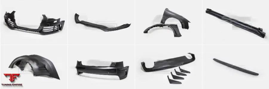 Fits Audi RS5 with some adjustments during install on the rear fender flares and side skirts