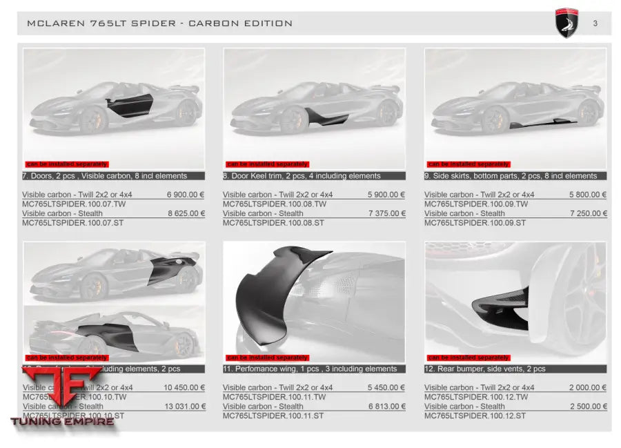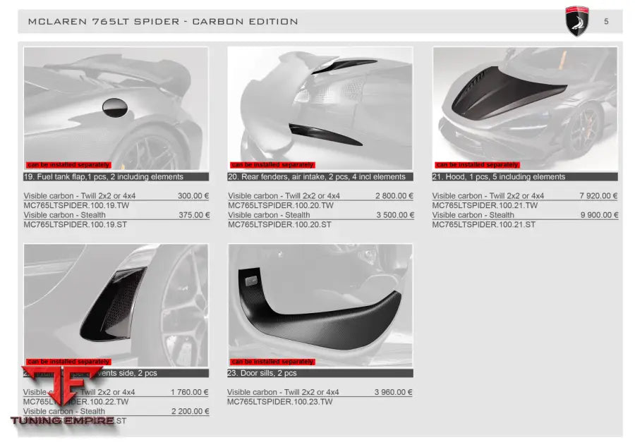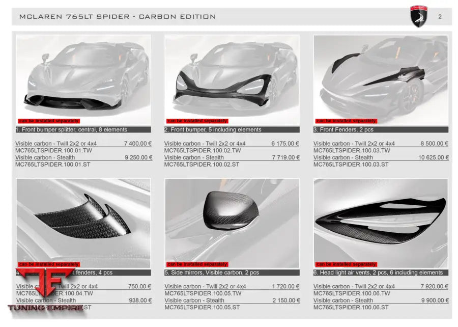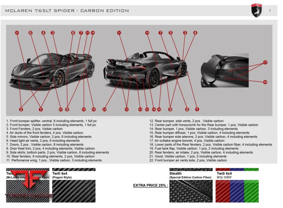 TOP CAR MCLAREN 765LT SPIDER MCLAREN 765LT SPIDER - FULL KIT VISIBLE CARBON - TWILL 2X2 OR 4X4