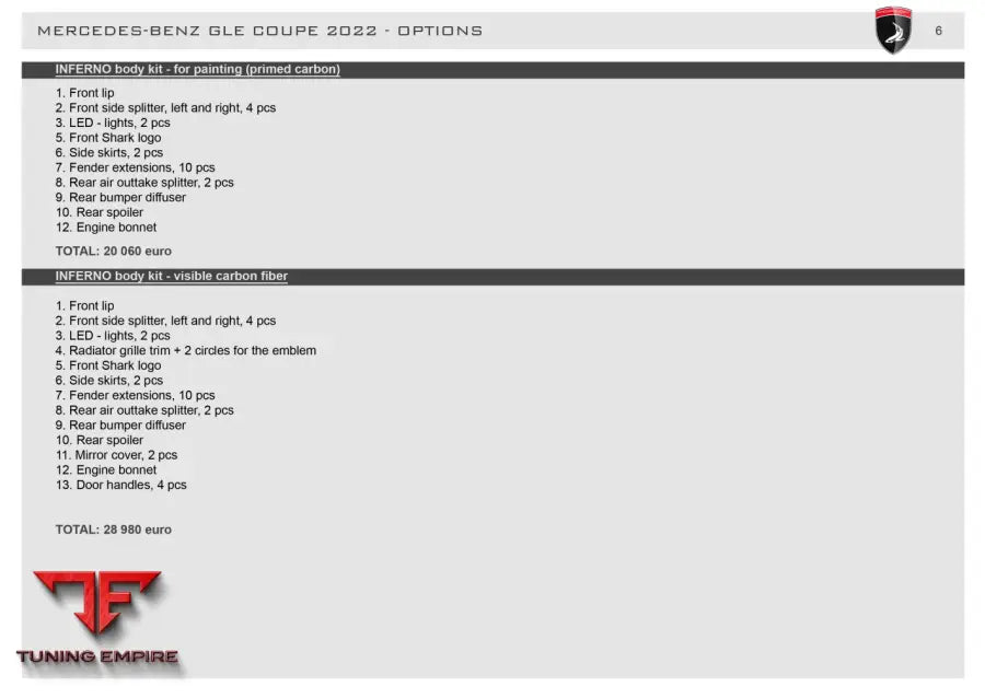 TOP CAR MERCEDES-BENZ GLE COUPE - INFERNO body kit - for painting (primed carbon)